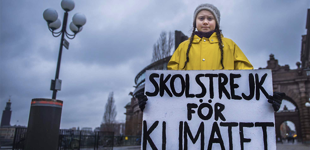 Miljöaktivisten Greta Thunberg skolstrejkar. Foto: TT