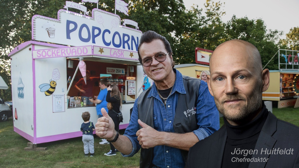 Musikern Peter Jezewski, känd från rockgruppen The Boppers på Sverigedemokraternas sommarfestival i Sölvesborg. Foto: Krister Hansson / TT