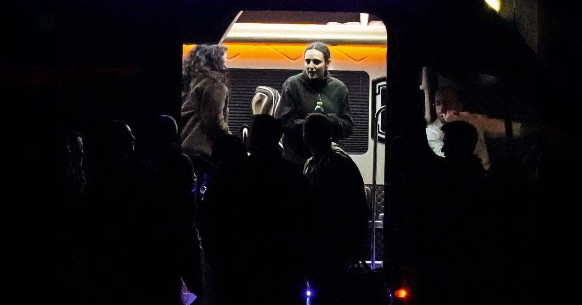 Frisläppta israeliska gisslan Romi Gonen med sin mamma Merav, inför avfärd med helikopter, södra Israel, den 19 januari 2025. Foto: Ohad Zwigenberg/AP/TT