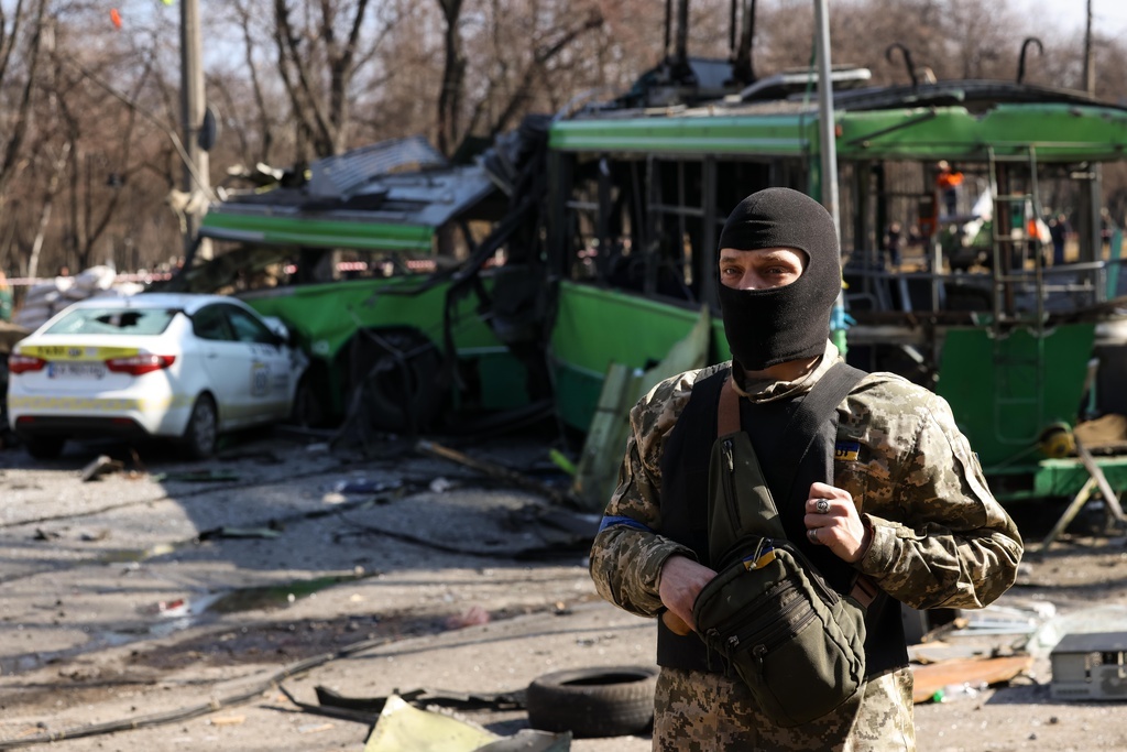 Bombad buss i Kiev, mars 2022. FOTO: Ziv Koren /TT