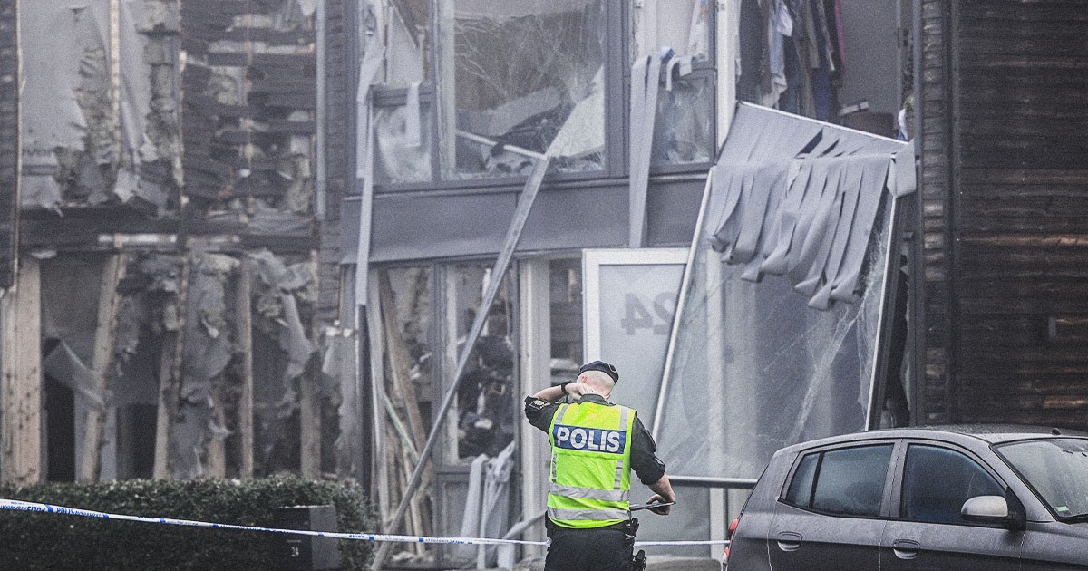 Polis på plats efter en explosion i Fullerö vid Storvreta utanför Uppsala, den 28 september 2023. En kvinna i 25-årsåldern dog i attentatet. Foto: Anders Wiklund/TT