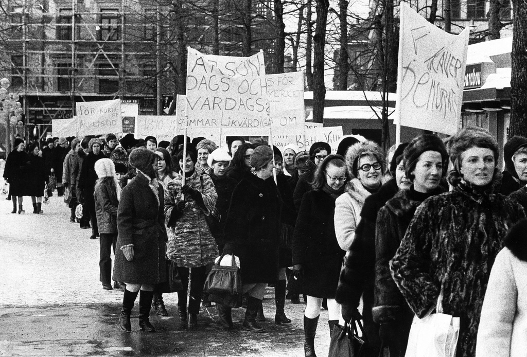 Mycket har blivit bättre, skriver Caspian Rehbinder, Timbro. Men trettio procent saknar inflytande över förläggningen av sin arbetstid. På bilden protesterar telefonister för höjd lön och bättre arbetstider. Året var 1970. Foto: Lars Groth/TT.