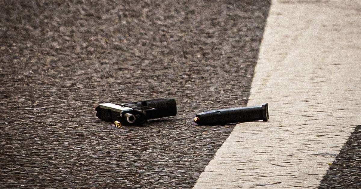En pistol med magasin på marken. Arkivbild. Foto: Magnus Lejhall/TT