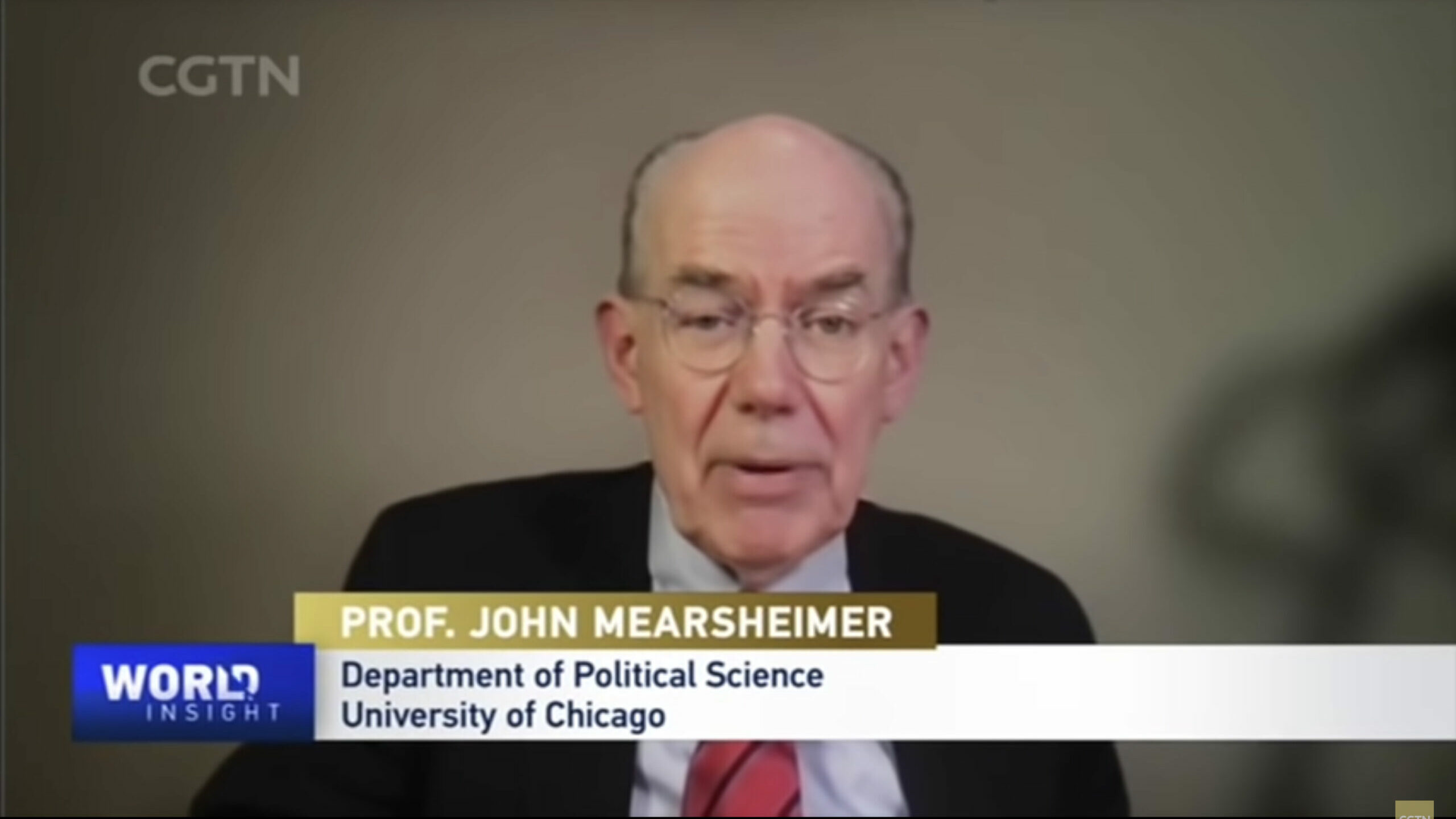 I en intervju med Kinas kommunistpartis internationella propagandaverktyg CGTN berättar John Mearsheimer varför Nato har skulden för kriget. Skärmdump: Youtube: https://www.youtube.com/watch?v=ZmnllaCMaJw&t=798s