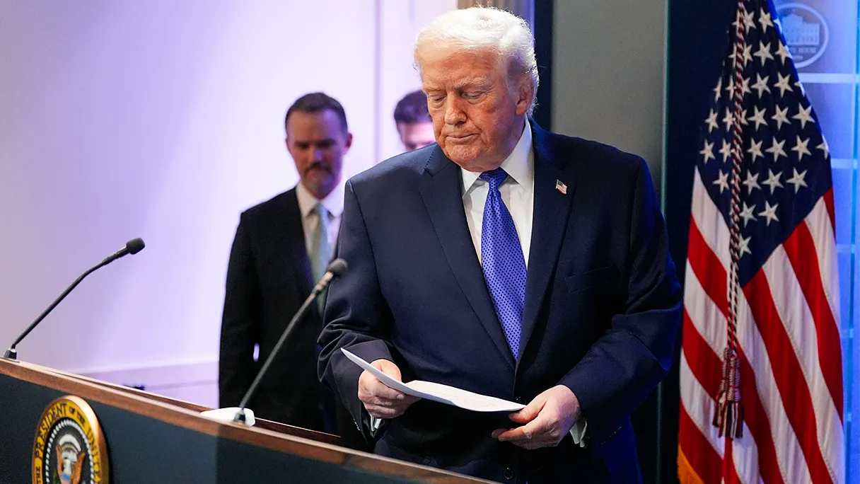 USA:s president Donald Trump håller en pressträff där han kommenterar Högsta domstolens beslut att ogiltigförklara presidentens tullar.1,2