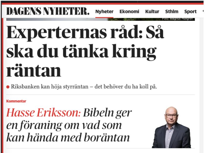 Så här skrev Dagens Nyheter i december 2018 i en tillbakablick över ”de goda åren” med stigande bopriser: ”2012 låg banken SBAB:s tvåårsränta kring 4,5 procent. Sedan har den stadigt sjunkit till dagens snittränta på 1,54 procent. Det innebär många sköna tusenlappar i sänkta räntekostnader för de med stora bolån.