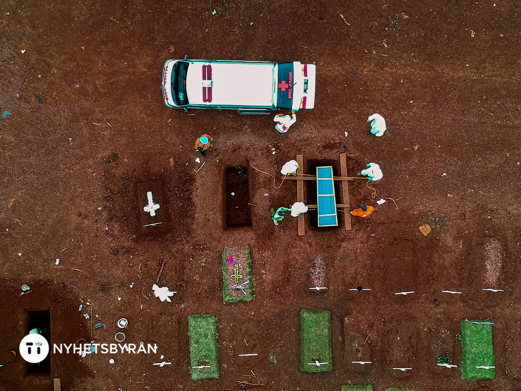 Begravning av offer för covid-19 i Indonesien INA Photo Agency/TT