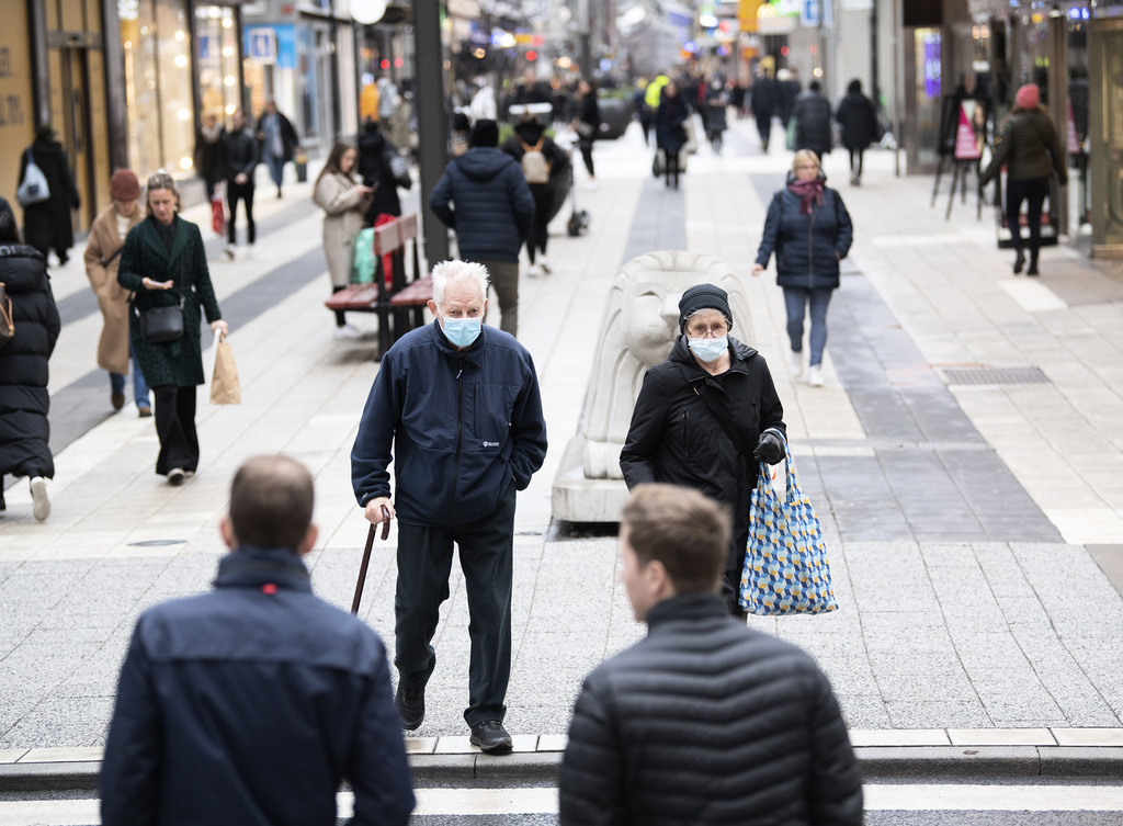 Ansiktsmask är främst ett skydd för att hindra bäraren från att råka smitta andra, men i Sverige är det ofta bara äldre och utsatta som har dem. Foto: Fredrik Sandberg/TT