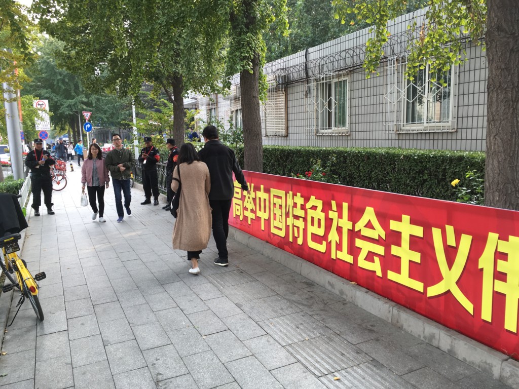 Lyft socialismens fana högt! Propagandabanderoll i Peking.
