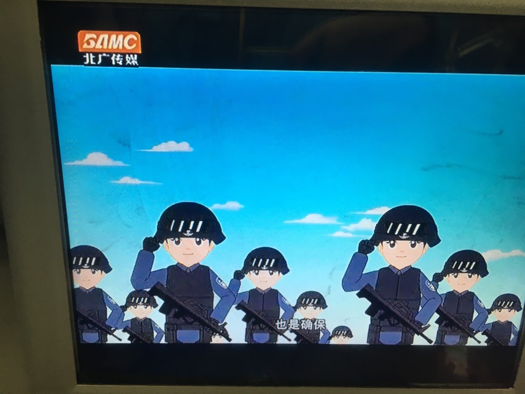 För din säkerhet – propagandaanimation i Pekings tunnelbana.