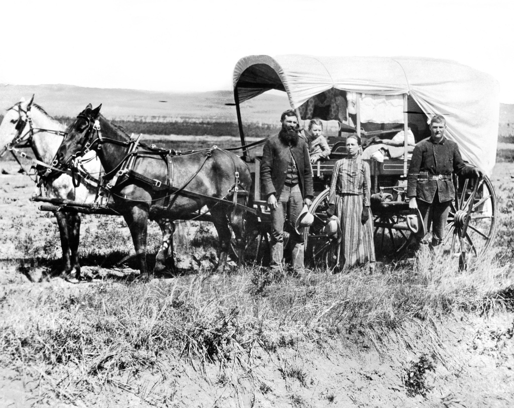 Familj i Nebraska 1886. Det hårda livet för pionjärerna skildras allt oftare historiskt korrekt i westernlitteraturen. Foto: Underwood Archives/TT