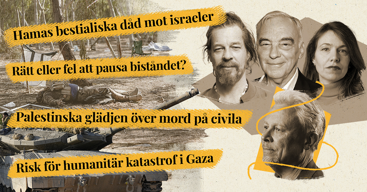 Ofattbara grymheter begicks mot hundratals civila i södra Israel. Värre än IS, enligt flera rapporter. Hur svarar världen på Hamas terror? Och varför reagerar en del palestinier med jubel över massakrerna i Israel, och hur är det att vara jude i världen idag? Veckopanelen om det som hände den senaste veckan och hur vi går vidare nu.