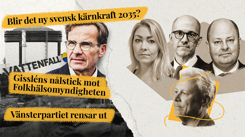 Veckopanelen med Maria Ferm, Per Gudmundson och Thomas Mattsson under ledning av Staffan Dopping. Nu tas ett viktigt steg mot nya kärnkraftreaktorer i Ringhals säger Tidöpartierna, men oppositionen tycks göra tummen ner. Folkhälsomyndigheten ville peta statsepidemiologen men tar intryck av hans stenhårda kritik. Blir det ett möte mellan Putin och Zelenskyj, och vad händer i Gaza? Vänsterpartiet rensar ut, och förre nationelle säkerhetsrådgivaren Henrik Landerholm hoppas på friande dom.