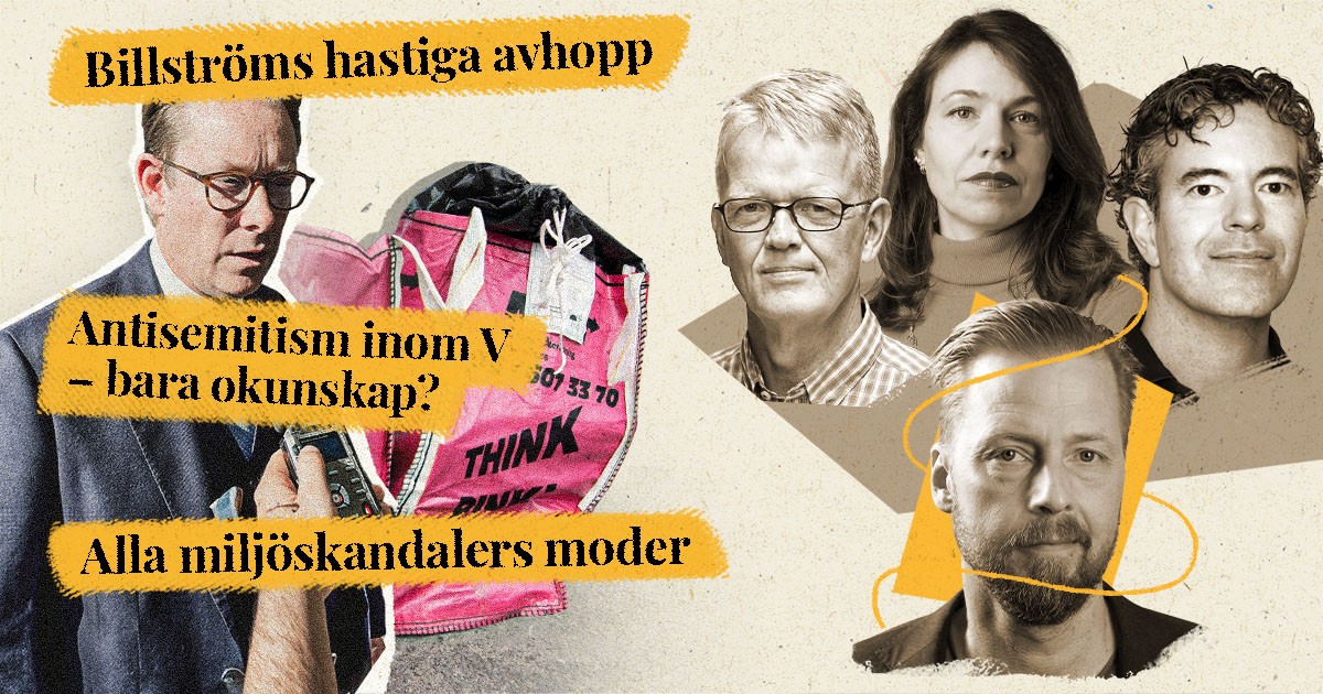 Veckopanelen med Gunnar Wetterberg, Josefin Utas och Henrik Mitelman under ledning av Magnus Thorén. Vänsterpartiets ledning slår tillbaka mot anklagelser om antisemitism inom rörelsen, Vattenfall sätter prestigeprojekt inom vindkraft på paus och miljöskandalen kring bolaget Think Pink har hamnat i rätten. Inspektörerna på IVO fintas bort av kriminella, rekommendationer kring barns skärmtid har presenterats och vem efterträder Tobias Billström som utrikesminister?