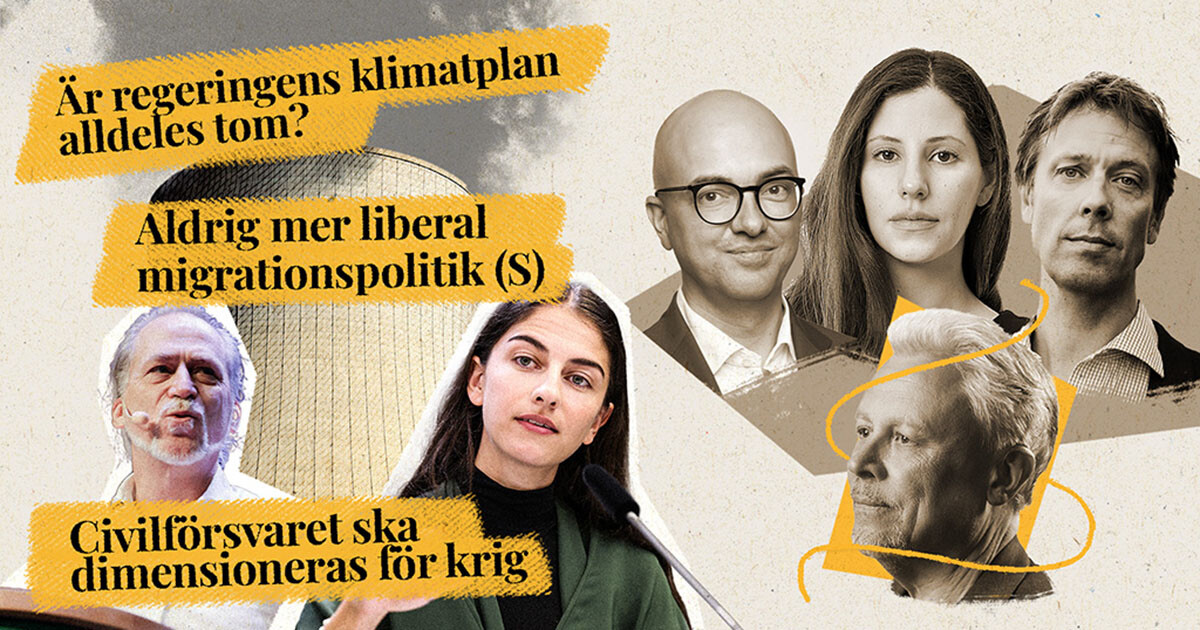 Veckopanelen med Torbjörn Hållö, Paulina Neuding och Lars Stugemo under ledning av Staffan Dopping. Regeringen byter ut symbolpolitik mot det som ger effekt långsiktigt, sa statsministern om klimathandlingsplanen. Oppositionen talar om svek och tomhet och söker misstroende mot klimat- och miljöministern. Socialdemokraterna utesluter att komma tillbaka till en ”ultraliberal” migrationspolitik. Sveriges ekonomi växer igen. Och försvarsberedningen kommer med allvarsord och vill att civilförsvaret dimensioneras efter högsta beredskap och krig.