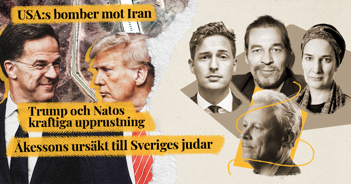Veckopanelen med Emil Källström, Bob Hansson och Anna Nachman under ledning av Staffan Dopping. USA har bombat underjordiska kärnanläggningar i Iran, och Natoländerna har enats om historiskt stor upprustning. I båda fallen heter huvudpersonen Donald Trump. Almedalsveckan har gått i mål; en purfärsk partiledare som förväntas rädda Liberalerna har talat, och en nestor (SD:s Jimmie Åkesson) har bett Sveriges judar om ursäkt för partiets antisemitiska historia. Dessutom: Varför läser vi färre och färre böcker?